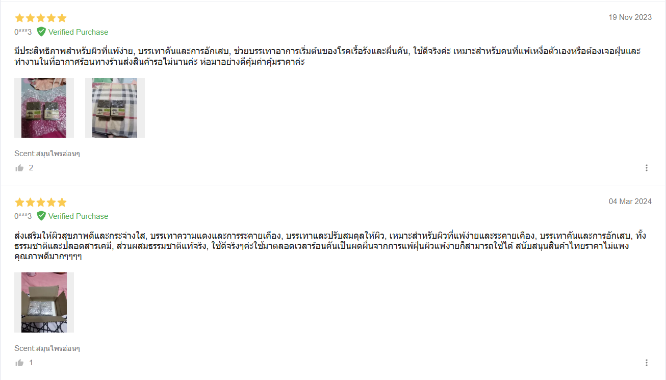 - เราไม่ใช้กลิ่นสังเคราะห์ ซึ่งพบอาการแพ้ในผู้ใช้ได้บ่อยกว่า Paraben เสียอีก